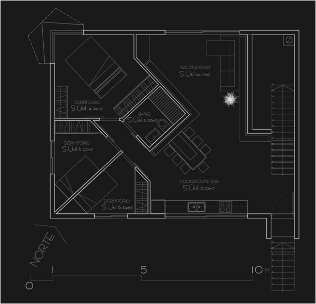Recibo el encargo en el año 2010 de estudiar la ampliación de una vivienda unifamiliar ya existente. Dicho encargo provenía de una joven pareja que pretendía ubicar su vivienda sobre la ya existente de los padres de uno de ellos. Se resuelve el programa en una planta rectangular de uno 96 m², con acceso independiente desde el exterior, y con vistas en tres de sus fachadas, potenciando las vistas de salón y dormitorios hacia las faldas del Teide y el horizonte atlántico.