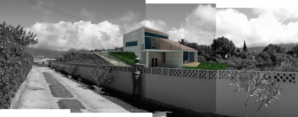 Proyecto del año 2010 para la realización de una vivienda unifamiliar en un solar de unos 500m² en Las Norias, en el término de Tazacorte, en La Palma. Se trata de una vivienda que aprovecha la pendiente del terreno para escalonarse y poder conseguir así capturar todas las vistas del horizonte y las puestas de sol. Las estancias vivideras se desarrollan en los niveles inferior e intermedio, mirando al mar, mientras que los dormitorios vuelcan sus vistas hacia la Caldera de Taburiente buscando mayor privacidad.
